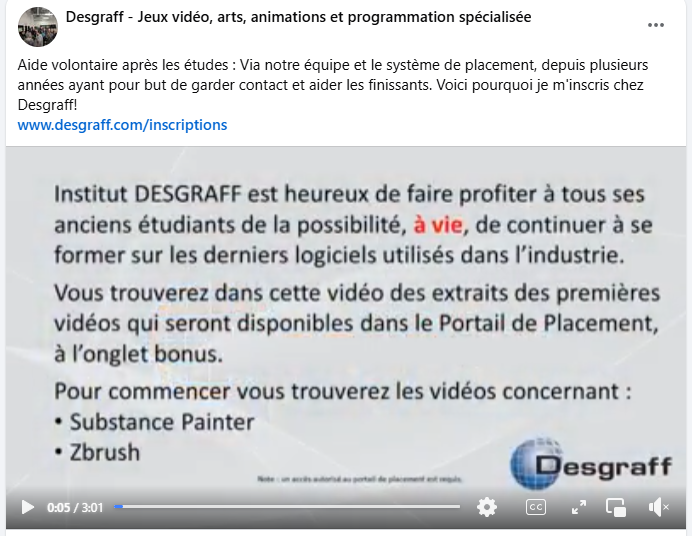 De plus, il arrive dans les écoles qu’un changement technologique majeur se produise dans l’industrie pendant qu’une formation est en cours ou en fin de parcours, ce qui peut susciter des frustrations. Sachez que nous sommes profondément préoccupés par ce qu’ils vivent et les défis qu’ils rencontrent. Nous tenons à souligner notre solidarité et notre engagement à accompagner nos finissants sur une base volontaire, c’est pourquoi nous proposons un support après la formation pour celles et ceux qui en font la demande, toujours dans un esprit de collaboration, d’écoute et de respect mutuel. Nous aidons gratuitement (en dehors du contrat étudiant), au cas par cas, avec des solutions sur mesure telles que : s’asseoir dans la classe d’un nouveau groupe pour se mettre à jour, ou accéder à des tutoriels via notre portail de placement (qui contien les étudiants qui remonte a 2007!).